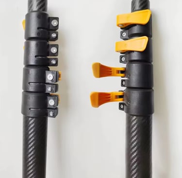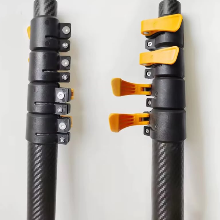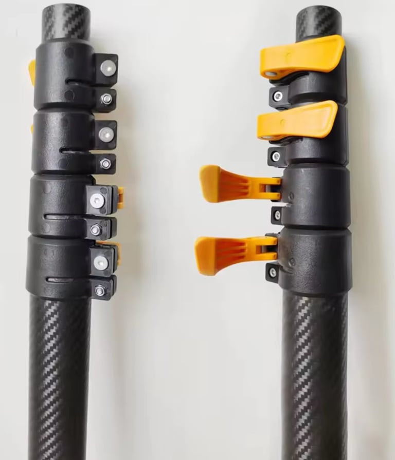Quick-lock extension system allows rapid deployment from compact 1.8m collapsed length to full 7m or 9m reach in seconds.