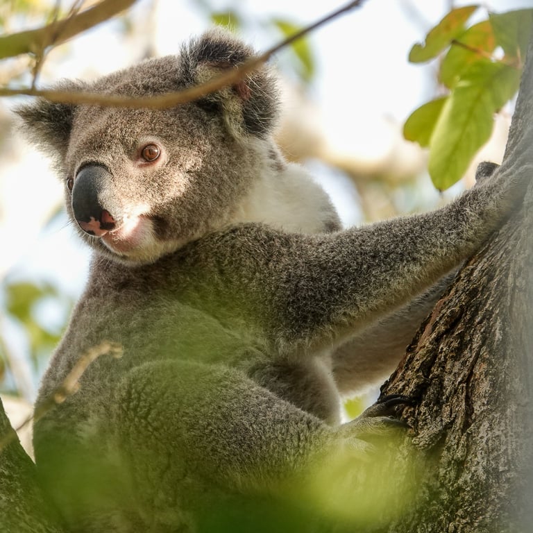 Specially designed halo attachment safely guides koalas without causing stress or injury during rescue operations.
